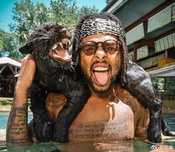 奥尼尔喜欢养老虎,前湖人球员拉塞尔则是喜欢养黑豹,黑豹这种东西,在以前古代的时候,就有一些少数民族进行饲养,黑豹是一个捕食的强者,拉塞尔饲养的这只黑豹,在他身上也是显得有点娇小,不知道等它长大之后会不会有什么变化。